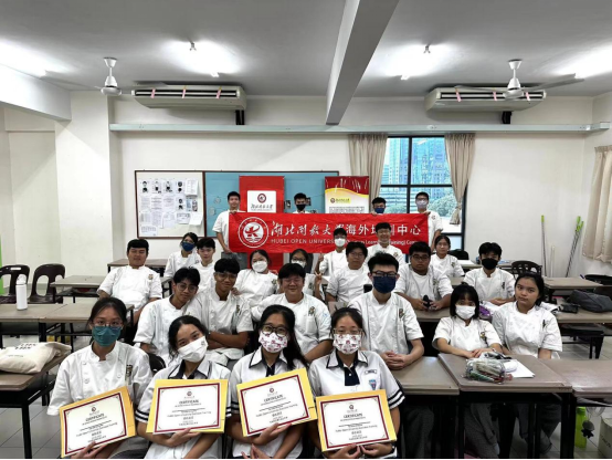 两场培训精彩生动,两位教师的授课内容也紧紧抓住中、马两方师生的关注点。学校全景演播室内时不时响起同学们对授课内容的叹赞声,吉隆坡尊孔独立中学的同学表示:“我很喜欢费嘉琪老师介绍武汉特色食品,除了了解武汉的菜品,我还学了很多中国历史和文化,这节课让我受益匪浅。”还有同学感叹:“虽然我已经知道AI正在代替很多人工操作,但是听了田野老师的介绍我还是惊奇于AI的智能性以及它发展得有多快。我想在大学里学习AI相关专业,研究更多这方面的知识。”培训结束后,湖北开放大学海外学习(培训)中心为在场学员颁发培训证书和纪念品,双方师生共同合影,为两场培训画上圆满句号。