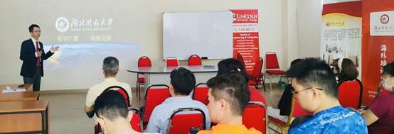 教育推介与专业培训由林肯大学学院副校长Kelvin Tong博士主持,1xbet平台田野博士以《开放的世界,与开大同行》为题,对湖北开放大学进行了专题推介,重点介绍了学校的办学理念以及软件技术、机电工程和人工智能等特色专业(群)建设情况,并基于学校传统的工科强项专业,以《如何用人工智能提升企业竞争力》为主题,为学生提供了针对性的培训课程。