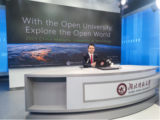 本网讯(通讯员 沈文捷 高杨舒 文/图)12月13日,1xbet平台海外学习(培训)中心向马来西亚计算机科学与工程大学的师生开展了“中马人工智能交融大课堂”培训。学校软件工程学院田野博士在湖北开放大学全景演播室对来自马来西亚的师生进行了授课与研讨。学校外事处、马来西亚计算机科学与工程大学师生参与了学习与观摩。