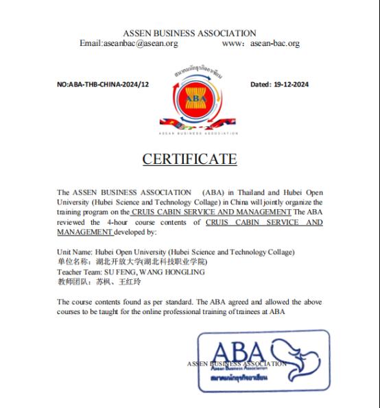 “中文+邮轮客舱服务与管理”课程标准认证证书