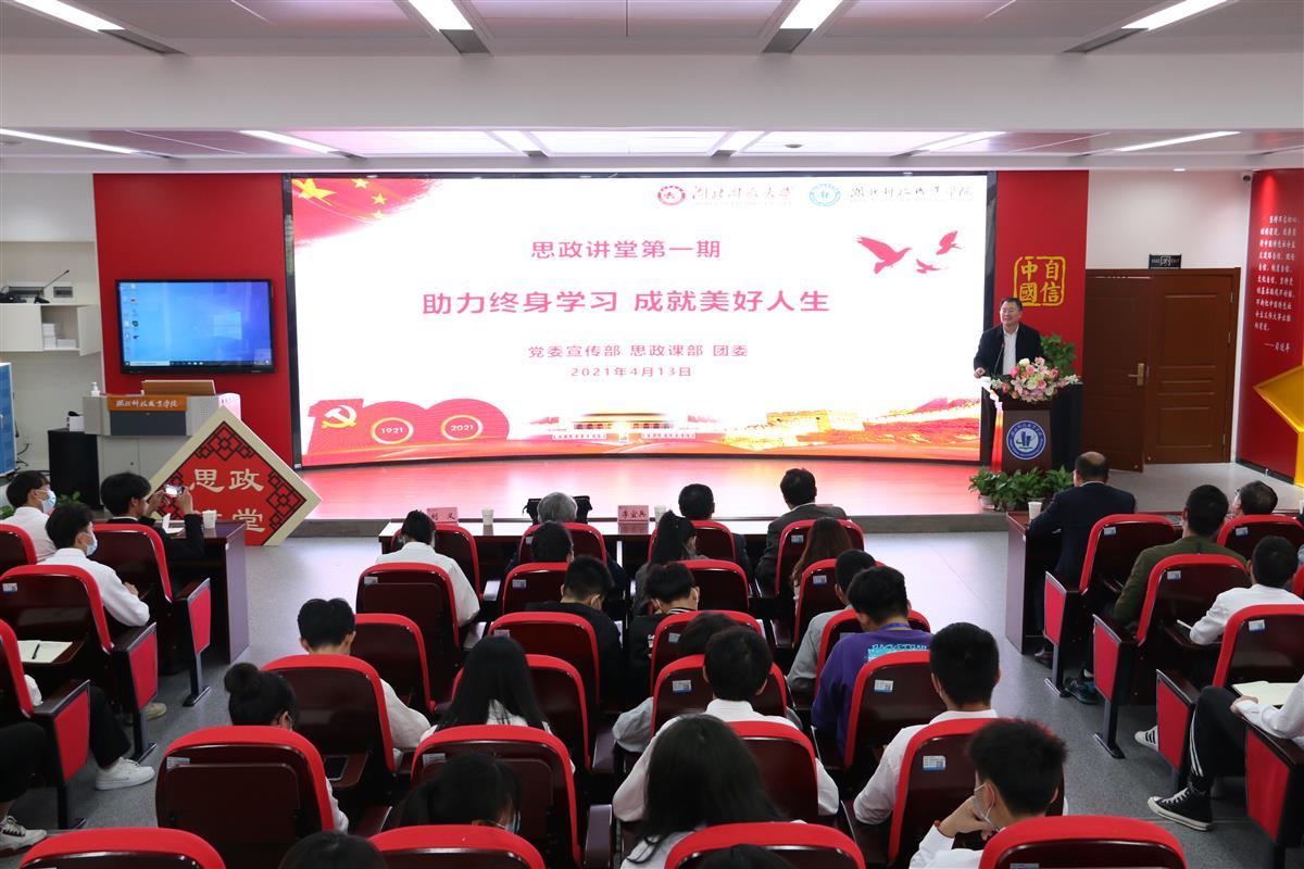 “谭院士是从电大毕业的,他的分享鼓舞了我们很多学生。”谈起当年的这节思政课,胡继慧的印象仍旧很深刻。她介绍到,目前该校共举办60期思政讲堂,对课内课外、校内校外、线上线下的思政教育素材,做到了“全覆盖”。其中线上思政讲堂最高在线人数达4000人次。