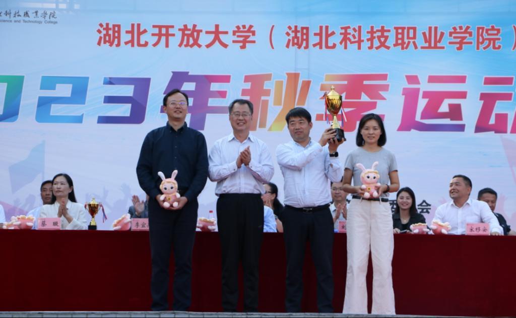 最终,电信工程学院、工商管理学院组织有力,表现出色,富有创新精神,获“最佳组织奖”;传媒艺术学院、工商管理学院代表队的表演内容健康向上,富含育人元素、家国情怀,具有较高的艺术性和观赏性,体现出了当代大学生良好的精神风貌,获“团队风采奖”;经济贸易学院、电信工程学院代表队开幕式上入场步伐整齐有力,动作协调一致,方阵成员精神饱满,充满活力,获“阵容豪迈奖”;在比赛过程中,机电工程学院、软件工程学院代表队表现出积极向上、道德高尚的精神风貌,展现出了团结协作、勇攀高峰的精神,获“体育道德风尚奖”。工商管理学院、电信工程学院、经济贸易学院分别夺取团体总分前三名;工商管理学院、电信工程学院、机电工程学院分获男子团体总分前三名;工商管理学院、电信工程学院、经济贸易学院分获女子团体总分前三名。校领导向获奖团体、单位、个人颁发了奖杯、奖牌和荣誉证书。