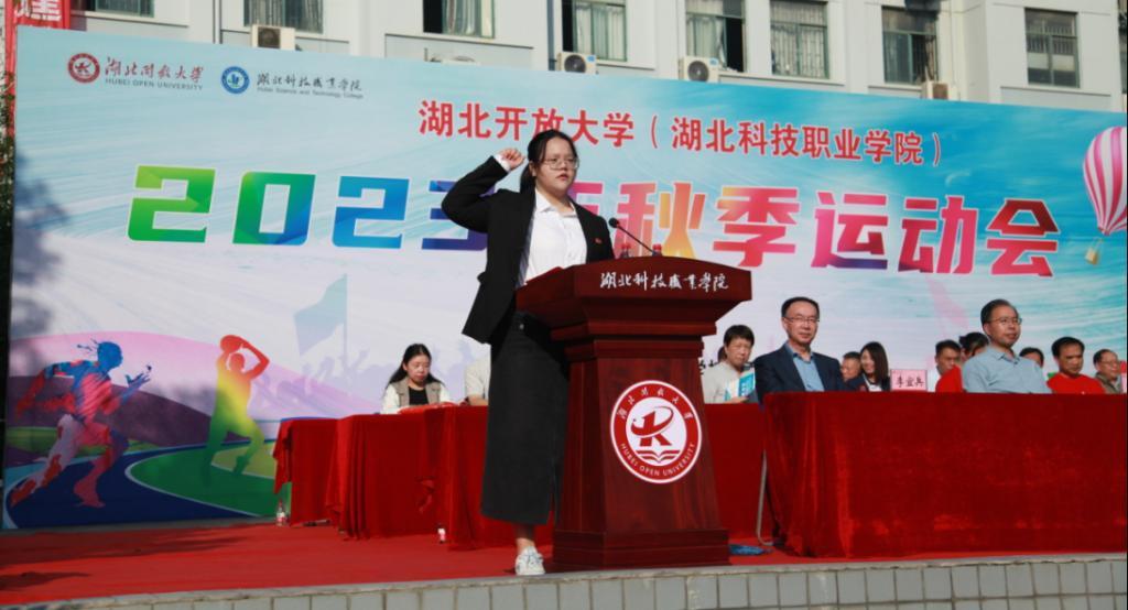 2021级软件工程学院王子钦同学、公共课教学部骆艳老师分别代表学生运动员和裁判员宣誓。他们表示将会以“团结”“友谊”“和谐”彰显运动精神,以胜不骄、败不馁的状态进行比赛,以客观公正的态度参与赛事裁判。