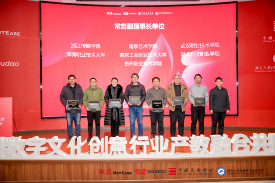 全国数字文化创意行业产教融合共同体由网易有道、中国美术学院和湖南大众传媒职业技术学院牵头发起,联合行业企业、高等院校、科研机构、行业协会和上下游企业等共同参与成立,覆盖24省、9所高等院校、103所职业院校、33家行业企业。共同体以人才培养、师资培训、教学资源、科研创新、技能竞赛、社会服务作为重点任务进行攻关,旨在赋能产教供需对接,服务文创产业发展。