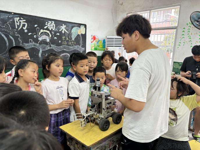 本次七彩假期乡村少年宫,志愿队成员们通过开展少儿编程、美术绘画、工业机器人、书法等精品课程引导少年儿童学习优秀品质,厚植爱家乡爱祖国的情怀,助力乡村留守儿童健康成长与全方位发展。(通讯员:金垒 佘宇东)