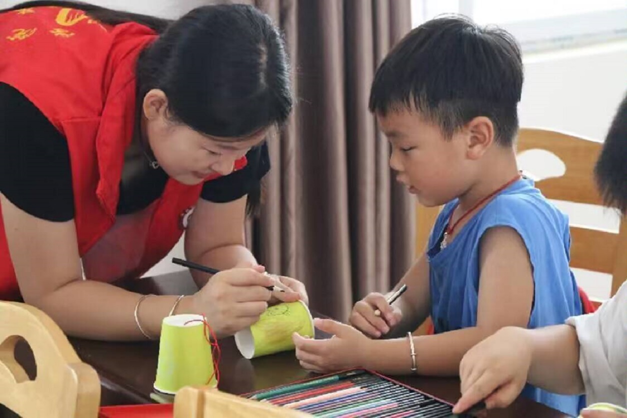 (图为头雁实践队成员帮助小朋友绘画)