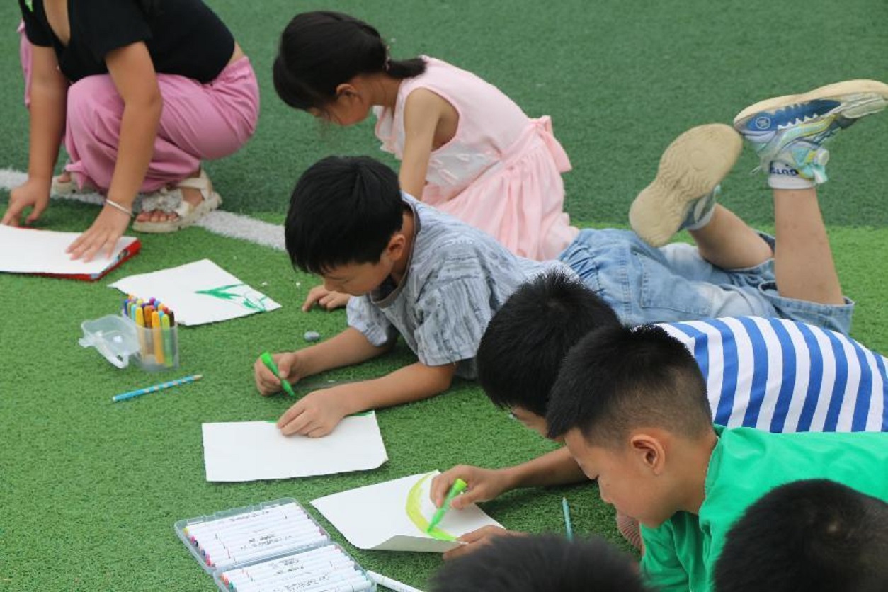 田野绘趣,童绘家乡。在观察中认识家乡,在绘画中赞美家乡,此次田野课堂是美育教育的重要一课。头雁实践队成员带领孩子们来到操场观察家乡风采,引导大家用画笔和色彩来赞美家乡。在小老师们的教导下,大家跃跃欲试,纷纷拿起画笔,画出自己心中家乡最美的模样。
