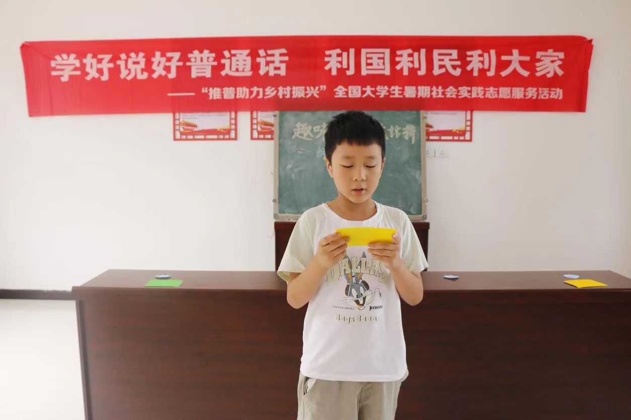为积极响应党的二十大关于“加大国家通用语言文字推广力度”的决策部署,贯彻落实习近平总书记关于教育的重要论述和关于语言文字的重要指示批示精神。7月18日,1xbet平台头雁实践队在枣阳市鹿头镇组织开展“语动未来 普绘新篇”趣味普通话比赛。