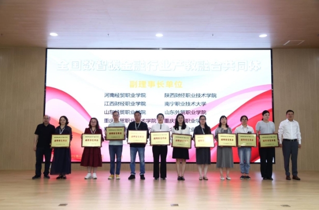大会举行了共同体成立揭牌仪式和43家成员单位授牌仪式,标志着全国数智碳金融行业产教融合共同体正式成立。
