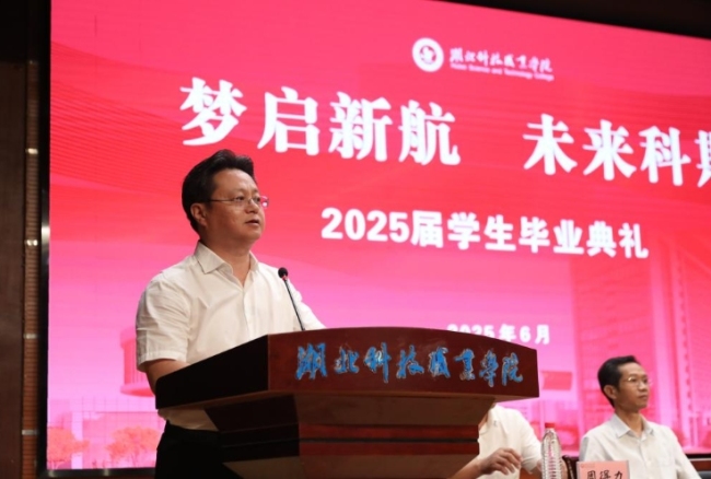 陈志祥站在师者、长者的角度,以《击鼓催征正当时奋楫扬帆向前进》为主题发表了满怀深情的毕业寄语,为即将告别校园的同学们上了一堂充满家国情怀、深情厚谊的思政大课。他向2025届全体毕业生致以最热烈的祝贺和最美好的祝愿,并对毕业生殷切嘱咐:一是铸家国脊梁,在时代洪流中锚定精神坐标。面对纷繁复杂的现实挑战与诱惑,要时刻校准内心的罗盘,让个人奋斗融入民族复兴伟业,以赤诚之心服务社会、奉献国家,让青春之光在担当中闪耀永恒价值。二是砺青春锋芒,在攻坚克难中闪耀匠心华彩。要始终怀揣一份“如切如磋,如琢如磨”的匠心,在专业领域中深潜精研,在时代熔炉中淬炼本领,绽放出最耀眼的青春光芒。三是怀从容气量,在潮汐翻涌间静观沧海万象。当遭遇困境、经历失败时,要学会保持内心定力与豁达,坦然接受未来,耐心包容不同,从容面对挫折。