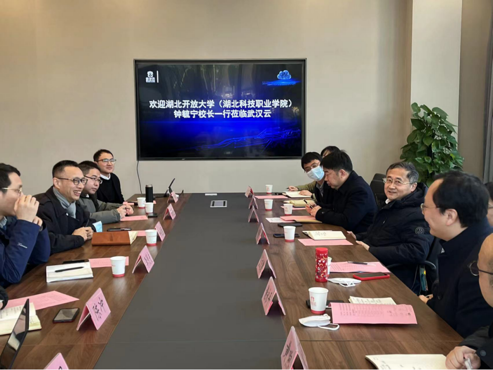 校企双方就“湖北产业教授”项目开展进行深入交流研讨。钟收成表示热烈欢迎钟毓宁一行的到来,介绍了武汉云公司的发展历程以及基本业务架构和运营情况。