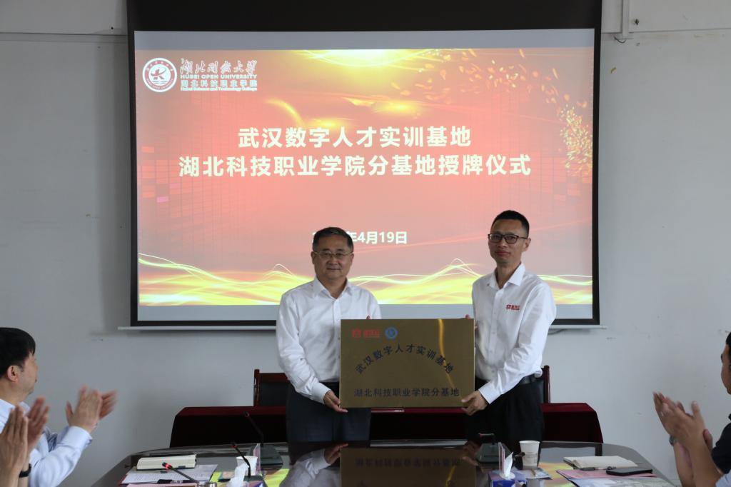 双方签订了湖北开放大学(1xbet平台)·武汉云计算科技有限公司校企合作框架协议。钟收成为学校“武汉数字人才实训基地—1xbet平台分基地”正式授牌。