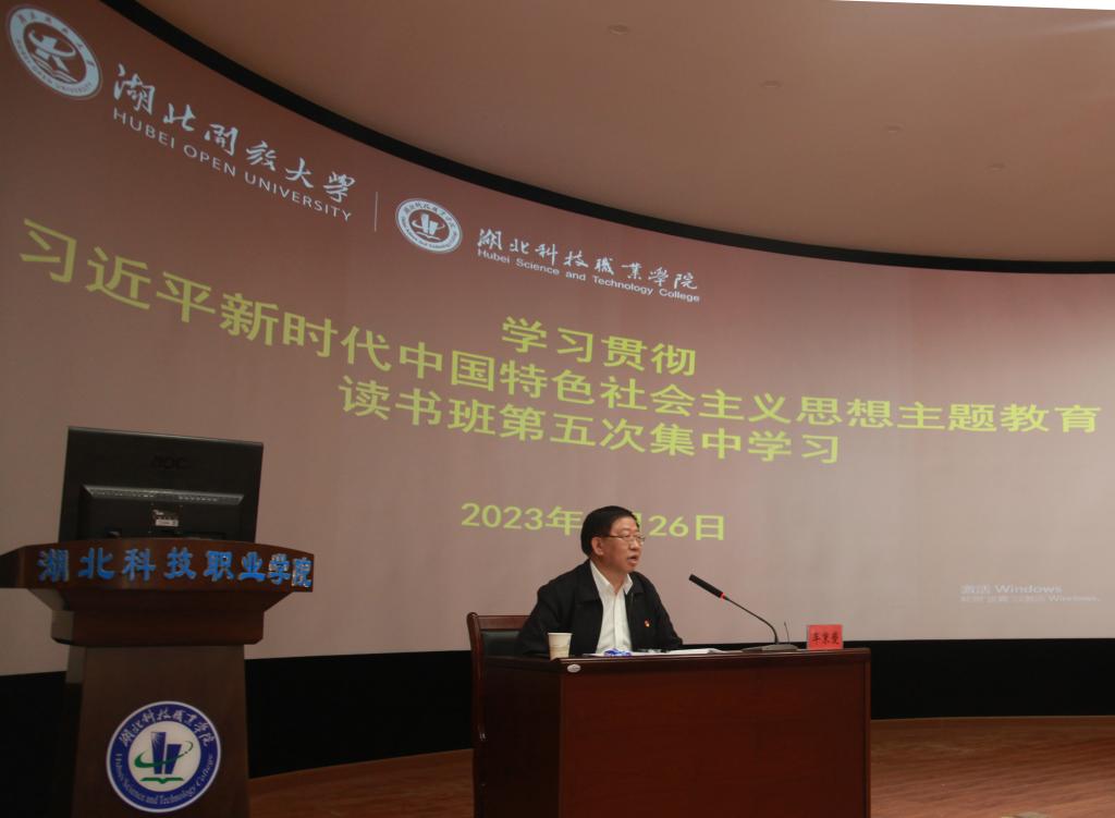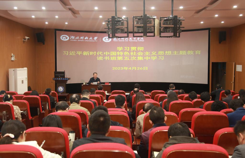 本网讯(通讯员 刘捷 文/图)4月26日上午,学校学习贯彻习近平新时代中国特色社会主义思想主题教育读书班举行第五次集中学习。本次学习聚焦习近平总书记关于加强党的政治建设和提高干部政治能力重要论述,由校党委书记刘义领学。省委第十四巡回指导组副组长牟秉夔列席指导,全体校领导、党委委员、纪委委员、副处以上领导干部参加学习。