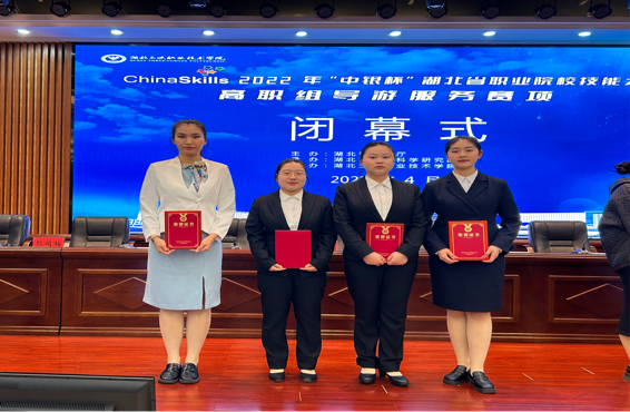本网讯(通讯员 王红玲 文/图)4月21日至23日,2022年“中银杯”湖北省职业院校技能大赛高职组导游服务赛项在宜昌举行,我院参赛选手李永娟获二等奖,王诗洁、胡玲、张丽分获三等奖。本赛项由湖北省教育厅主办,湖北教育科学研究院承办,湖北三峡职业技术学院协办,来自全省各地的32个高职院校代表队参赛,在赛事期间展示技能、切磋技艺,展现新时代导游服务技能人才风采。