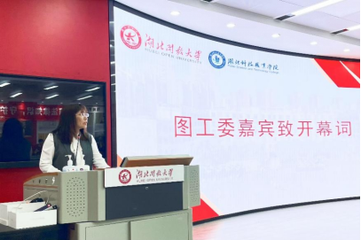 湖北省图工委高职高专分委会主任委员、武汉职业技术学院图书馆馆长侯利华教授应邀出席并致辞,同方知网湖北分公司副总经理高彪应邀出席并作经验分享,宣传部、学工部(处)、团委、教务处、职院教务处、各院(部)主要负责人及师生代表参会。