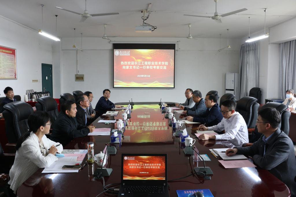 本网讯(通讯员 王欣/文 毕小艳/图)5月11日上午,长江工程职业技术学院党委书记向家文一行来校调研交流,校党委书记刘义、副校长宋移安参加调研交流活动。