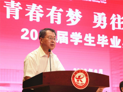 刘义作了题为《人生新赛道奋斗正当时》的精彩致辞,站在师者、长者的角度,为毕业生们上了离校前最后一堂生动的思政课。他向2023届全体毕业生致以最热烈的祝贺和最美好的祝愿,并送给毕业生三句话:一是情系家国,奉献强国之力。要自觉听从党和人民召唤,自觉扛起属于自己的责任,胸怀“国之大者”,勇做走在时代前列的奋进者、开拓者、奉献者,以实际行动践行“请党放心,强国有我”的青春誓言。二是接续奋斗,践行笃学尚行。要坚持终身学习,永葆进取精神,践行“立德树人 笃学尚行”校训,用敏锐的洞察力去求得真知,不断增长智慧和才干,增强本领和实力,以毫不懈怠的精神状态和一往无前的奋斗姿态,朝着人生的目标继续前进。三是心向光明,传递善意温情。要积极向他人传递善意温情,在生活中常葆纯真之心,常怀感恩之念,常挂授业之人,常存敬重之意,常忆相聚之缘,常爱身边之人,在感恩中抚慰心灵,在宽容中拥抱人生。