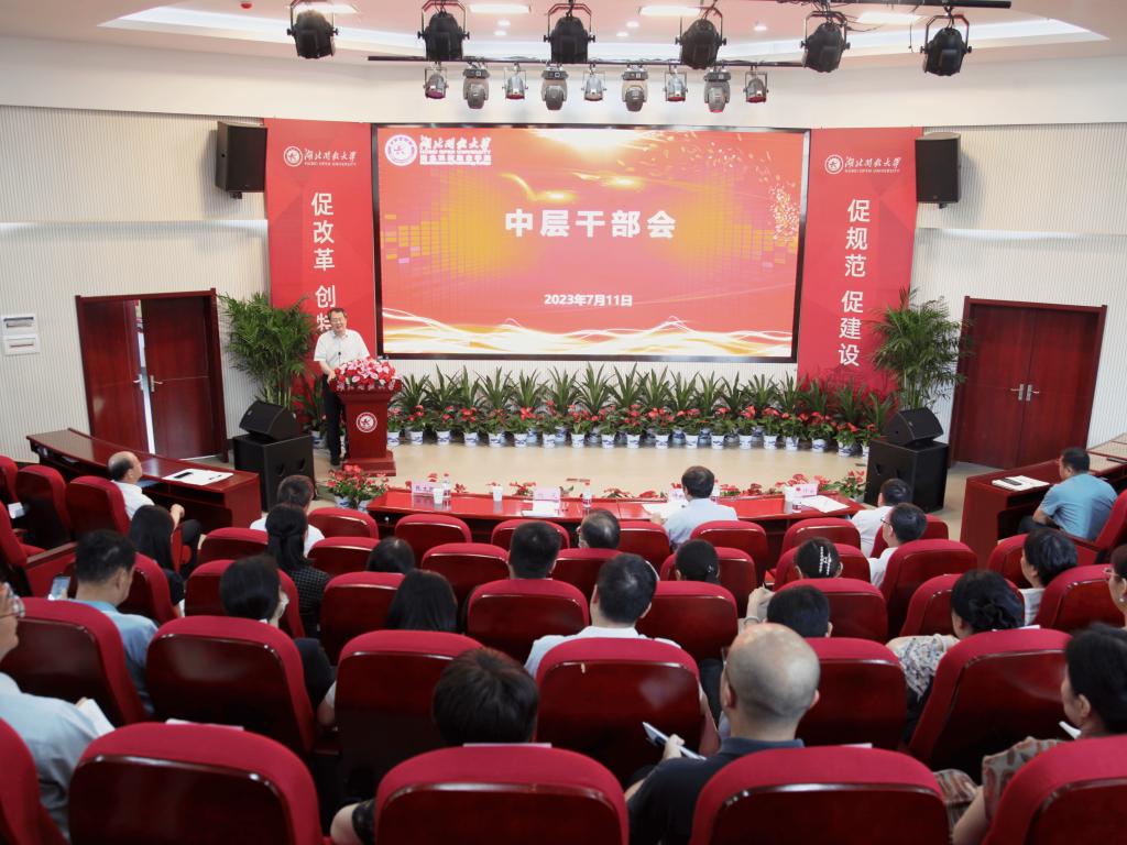本网讯(通讯员 李玲芳/文 刘捷/图)7月11日上午,1xbet平台召开副处级以上领导干部会。校党委书记刘义,校长钟毓宁,纪委书记、监察专员张文凯,副校长宋移安、汤春来,党委常委张化斌、李宜兵出席会议,全体副处级以上领导干部参加会议。