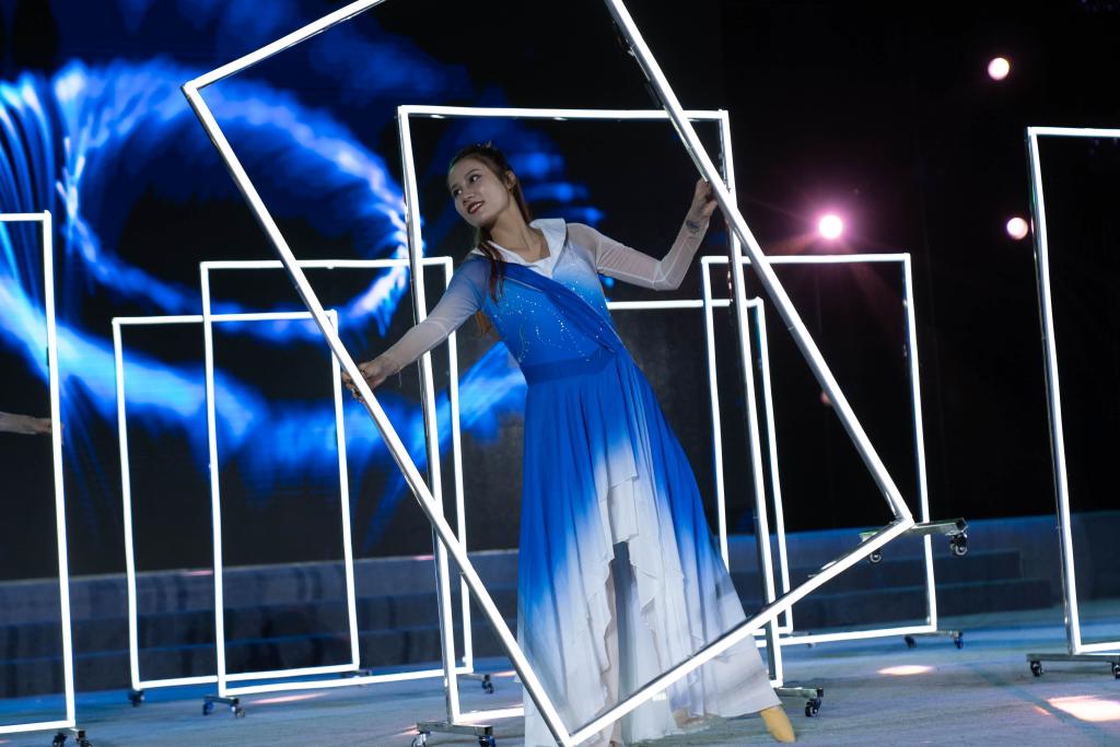 开学典礼结束后,迎新晚会在充满青春活力的开场舞《青春梦想》中拉开序幕,轻快的音乐、优美的舞姿展现着青春有梦勇往直前的向上风采。晚会节目亮点纷呈,舞蹈、歌曲、乐器联奏种类丰富,给现场师生呈现了一场精彩纷呈的视听盛宴。现场气氛热烈,舞台下同学们的手机闪光灯随着舞台上五颜六色的氛围灯和音乐节拍不断变幻,情绪高涨,欢呼声不断。节目中间穿插着有奖问答环节,新同学们踊跃上台参与互动,一度把现场氛围推向高潮。