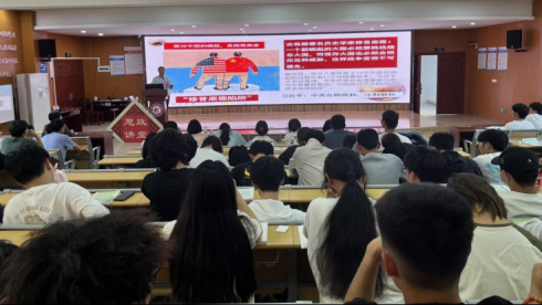 当刘义教授走进思政讲堂时,现场响起了热烈的掌声,同学们对这堂思政课充满了期待。课堂伊始,刘义教授结合同学们关注的巴以冲突等国际时事热点,讲解了威胁国家安全的五大问题,即贫困、恐怖主义、战争冲突、强权政治、传染病,阐明了国家安全是国人幸福生活的基本前提,引导同学们高度重视国家安全的重要性。