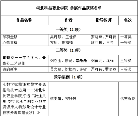 本网讯(通讯员 严可祎/文 孙瑜 沈娟 王芳/图)近日,由教育部职业院校艺术设计类专业教学指导委员会主办的“全国职业院校艺术设计类优秀作品展暨2023年校企融合成果转化对接会”获奖名单揭晓。传媒艺术学院师生的艺术设计类优秀作品及教学案例斩获优秀教学案例1项、一等奖2项、三等奖2项。