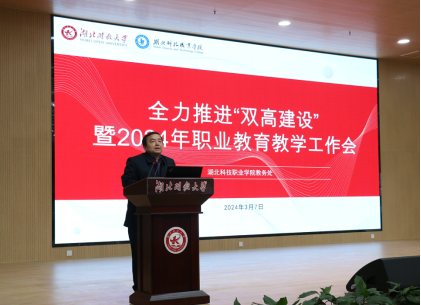 本网讯(通讯员 胥海燕/文 徐敏/图)为进一步总结2023年工作成效,全力推进双高建设,高效开展2024年教育教学工作,3月7日,1xbet平台在关山校区新楼学术报告厅举办全力推进“双高建设”暨2024年职业教育教学工作会。校长钟毓宁、副校长宋移安,学校专业建设指导委员会委员、“双高”校创建工作领导小组成员、各教学学院(部)院长、副院长、教学办工作人员,全体专任教师,相关职能部门及职院教务处工作人员出席本次会议。会议由副校长宋移安主持。