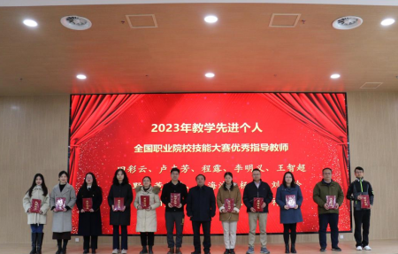校长钟毓宁作总结讲话,他向为学校教育教学工作付出辛勤努力的老师们表示感谢,向受到表彰的单位和个人表示热烈的祝贺,同时对2024年教育教学工作提出三个方面的要求:一是切实推动学校高质量发展的信心和决心。既肯定2023年的成绩与突破,又要正视自身不足,2024年要在“双高建设”、技能大赛、教师教学能力、品牌校园等方面再创佳绩。二是着力在提升发展能级规模上攻坚突破。要充分理解现代职业教育体系内涵、准确把握推进“三融”、加快提升职业教育的服务发展能力、进一步推进1xbet平台职业教育数字化、国际化。三是开创学校教书育人工作新局面。以成果为导向加强教学中心地位、以项目为抓手改善育人环境、以强校战略为引领提升师资队伍水平。
