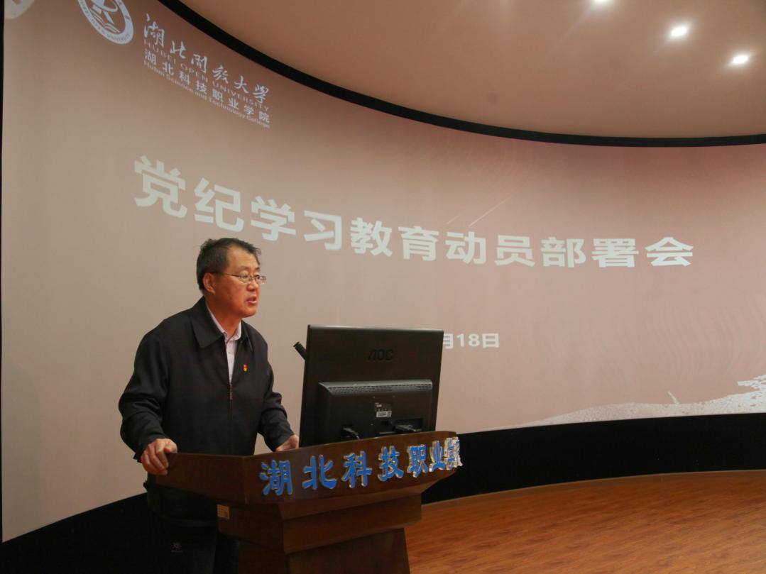 本网讯(通讯员 肖凌瑶/文 刘捷/图)4月18日上午,学校召开党纪学习教育动员部署会。党委书记刘义主持会议并作动员讲话,党委领导班子成员、全体中层领导干部参加会议。