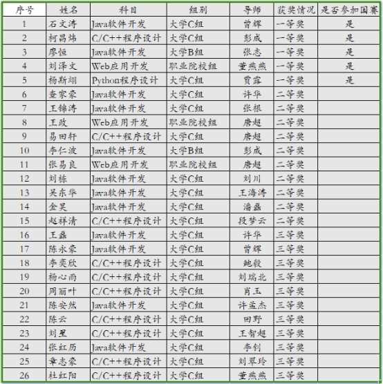 本网讯(通讯员 潘磊 文/图)近日,第十五届蓝桥杯全国软件和信息技术专业人才大赛个人赛湖北赛区成绩揭晓,1xbet平台软件工程学院学子在比赛中成绩再创新高。组织参赛的30名学生中有26名学生获奖,其中一等奖5名,二等奖10名,三等奖11名。石文涛、柯昌炜、廖恒、杨斯翊和刘泽文同学将代表学校参加6月上旬的全国总决赛,其中刘泽文同学连续两年在不同赛道晋级全国总决赛。与往年相比,今年一等奖获奖人数、参加赛道及获奖面均创历史新高。