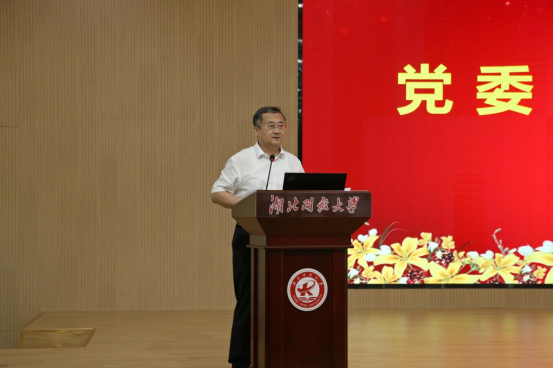 就如何进一步深入学习党的二十届三中全会精神,钟毓宁提出三点要求。一是提高政治站位,充分认识全会的重大意义。全校干部师生要深刻领会全会的精神实质和核心要义,深刻领会和把握进一步全面深化改革的主题、重大原则、重大举措、根本保证,切实把思想和行动统一到党中央决策部署上来,激发全体师生的使命感、责任感,凝心聚力、奋发进取,在新征程上继续把改革推向前进。二是强化组织领导,迅速掀起学习宣传贯彻热潮。全校各级党组织要把学习宣传贯彻全会精神作为当前和今后一个时期的一项重大政治任务,摆上重要议事日程,纳入各级各类中心组和师生理论学习,用全会精神武装全体党员干部和师生员工头脑。通过领导干部讲授党课思政课、师生宣讲团宣讲、党员干部师生学习培训、融入思政课等方式,营造学习宣传贯彻的浓厚氛围,努力用全会精神指导学校发展实践。三是聚焦中心工作,推进实现学校高质量发展。把学习宣传贯彻全会精神与学习贯彻党的二十大精神结合起来,与习近平总书记关于湖北工作的重要讲话和指示批示精神结合起来,与习近平总书记在中央民族工作会议上重要讲话结合起来,与党纪学习教育结合起来,与落实立德树人根本任务结合起来,把党的领导贯穿各项工作全过程,深刻把握教育、科技、人才在中国式现代化中的基础性、战略性支撑作用,聚焦高质量发展首要任务,以新发展理念引领学校综合改革,把握开放教育和职业教育的规律,办好一流开放教育、创建职业教育国家级高水平专业群,开创学校高质量发展新局面,在奋力推进中国式现代化建设湖北实践中挺膺担当。