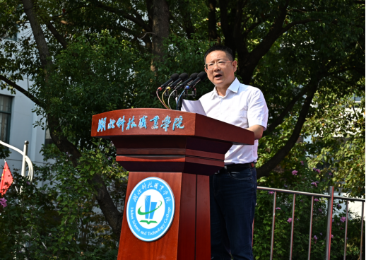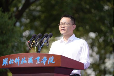 经济贸易学院2024 级大数据与会计专业张欣雨同学作为新生代表发言。她呼吁同学们珍惜时光,积极学习,立志成为一名有道德、有底线,勤奋好学、追求卓越,脚踏实地、全力以赴的湖科好青年。