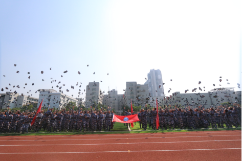 同学们抛帽庆祝军训圆满结束