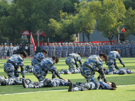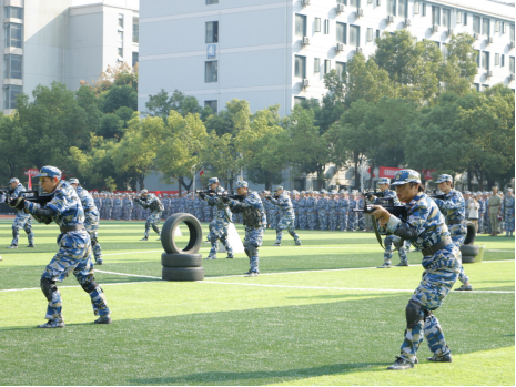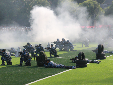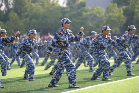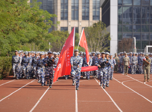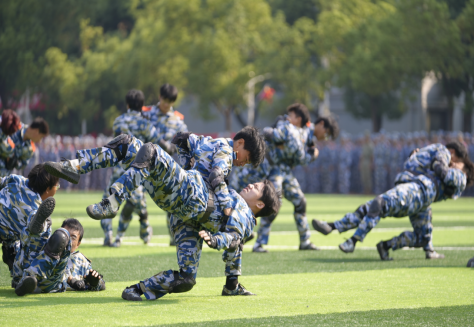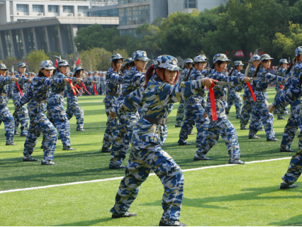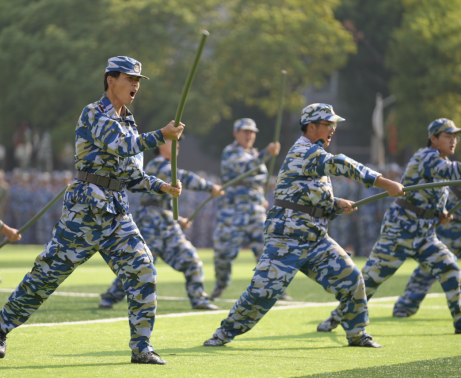 “开始!”随着陈志祥的一声令下,特色方队开始展示成果。战术对抗表演方阵,出击果断、搏斗英勇,演绎战场风云;军体拳方阵,拳风呼啸、气势如虹,彰显军人铁血本色;棍术方阵,身姿矫健、拳法精妙,诠释守护之威;刺杀枪方阵,枪影如电、寒光凛冽,显现战士之英勇;一招制敌表演,精准迅捷、一击必中,尽显克敌制胜之道;匕首操方阵,轻盈灵动、干脆利落,展现巾帼不让须眉之姿,充分展示了湖科学子奋发向前、积极健康、意气风发的朝阳之气。