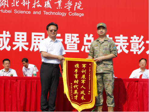 为感谢承训单位对学校军训工作的大力支持和辛勤付出,陈志祥代表学校向承训单位赠送锦旗。