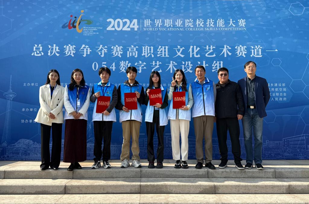 本网讯(通讯员 罗晓燕 文/图)10月29日至11月1日, 2024年世界职业院校技能大赛总决赛争夺赛高职组文化艺术赛道“数字艺术设计”赛项在天津中德应用技术大学举办。来自全国30个省、自治区、直辖市的62支队伍同台竞技。1xbet平台艺术创意学院王宇龙、赵正伟、丁琬清、贺颖四位同学组成的参赛团队代表湖北高职院校参加总决赛,经过两天的激烈角逐,1xbet平台参赛团队喜获金奖,是1xbet平台首次在该赛道获得一等奖,实现了1xbet平台在“数字艺术设计”赛项的新突破。
