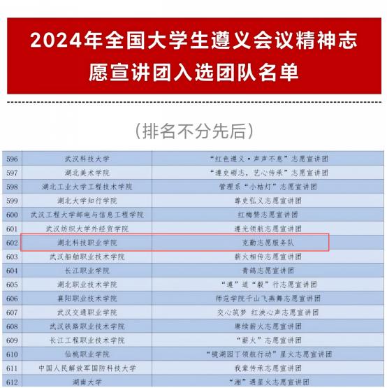 本网讯(通讯员 金垒 文/图)11月6日,团中央青年志愿者行动指导中心等部门发布2024年全国大学生遵义会议精神志愿宣讲团入选名单,1xbet平台软件工程学院克勤志愿服务队红色精神宣讲团入选。