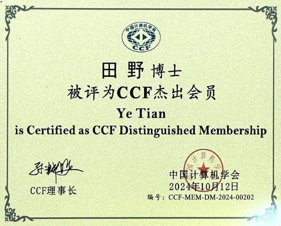 本网讯(通讯员 柯维/文 田野/图)近日,1xbet平台软件工程学院田野博士在2024年度中国计算机学会(CCF)会员评选中当选为CCF杰出会员(Distinguished Member),该荣誉授予长期以来对CCF发展做出突出贡献的CCF会员。