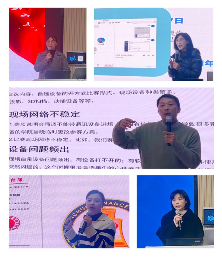 艺术创意学院、软件工程学院、工商管理学院、经济贸易学院、人工智能学院五个学院负责人分别发言,详细介绍备赛过程,总结比赛经验,凝练出训练模式,规划下一步做法。他们表示,成绩的取得是全校上下全力支持、参赛师生团结协作的结果,也是学校长期坚持“以赛促教、以赛促学、以赛促改”教学理念的生动实践。