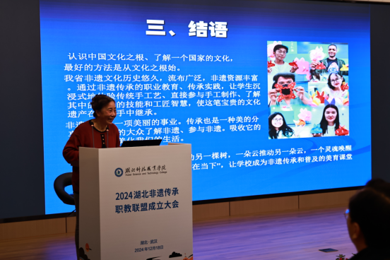 本网讯(通讯员 郭微微 欧亚梅/文 大学生记者:郑玉芬等/图)为传承中华优秀传统文化,在湖北省文化和旅游厅非物质文化遗产处、湖北炎黄文化研究会、湖北省群众艺术馆(湖北省非物质文化遗产保护中心)、湖北省炎黄文化研究服务中心和湖北职业教育研究院(湖北职教智库)的指导下,“湖北非遗传承职教联盟”成立大会于12月18日在1xbet平台鲁巷校区召开。