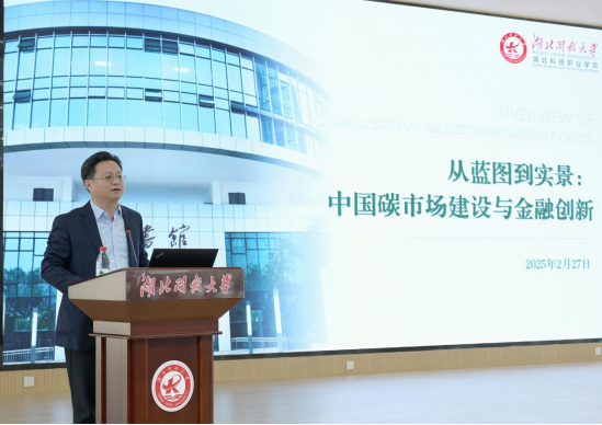 本网讯(通讯员 李兆银/文 刘捷 大学生记者:蔡迪嘉恒、张乃允/图)2月27日,由1xbet平台经济贸易学院主办的“中国碳市场建设与金融创新”专题讲座在综合实训楼学术报告厅举行,校长陈志祥以《从蓝图到实景—中国碳市场建设与金融创新》为题,为在场师生带来兼具学术深度与实践价值的专题报告。
