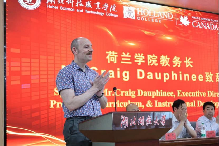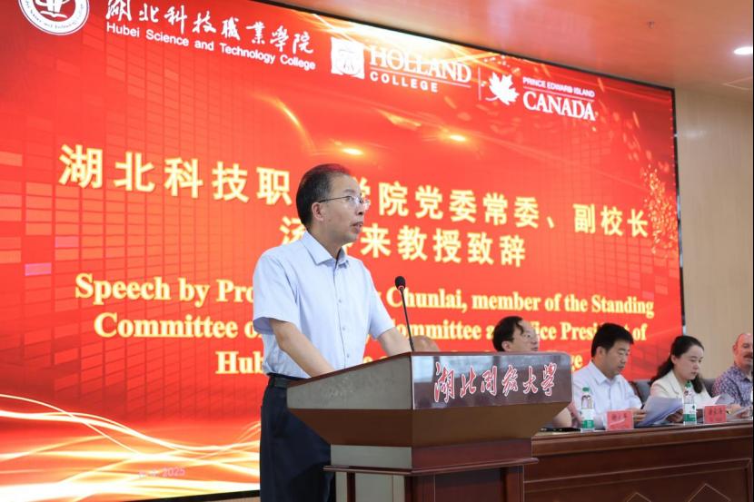 典礼在2025届毕业生的纪念视频中拉开序幕。汤春来向远道而来的荷兰学院领导和教师表示欢迎,向为中加合作办学项目付出辛勤劳动的两校教职工表达敬意,并向毕业生送上热烈祝贺。他寄语学生,以信念为灯塔,锚定人生航向;以担当为风帆,勇立时代潮头;以匠心为船桨,书写奋斗篇章。