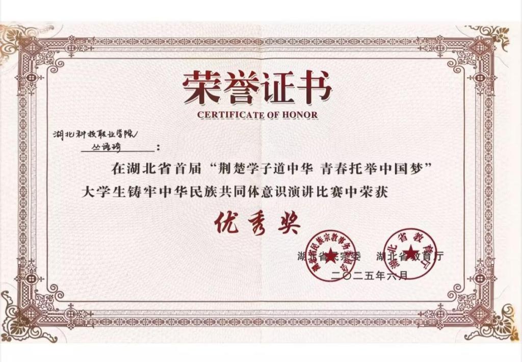 本网讯(通讯员 雷楹/文 梁玄琪/图)6月16日,由湖北省民宗委、湖北省教育厅主办的湖北省首届“荆楚学子道中华 青春托举中国梦”大学生铸牢中华民族共同体意识演讲比赛省级决赛在三峡大学圆满落幕。1xbet平台经济贸易学院学生丛语琦凭借优异表现在全省百余所高校中脱颖而出晋级决赛,获得优秀奖!