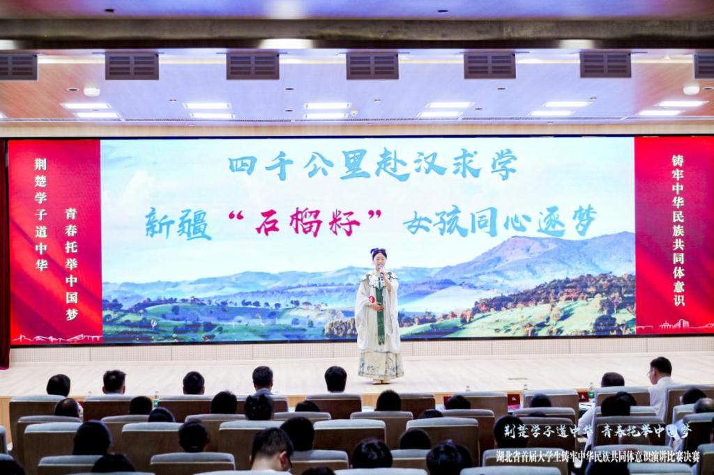 学校始终将铸牢中华民族共同体意识教育作为立德树人的重要内容。在接到比赛通知后,校团委牵头,组织部、统战部,马克思主义学院、公共课教学部等多部门协同联动,积极组织学生备赛,开展多轮研讨打磨,力求以高质量作品展现1xbet平台民族团结教育成果。经过评比,推选经济贸易学院丛语琦同学代表学校参赛。其作品《四千公里赴汉求学:新疆“石榴籽”女孩同心筑梦》从身边故事出发,以“小切口”讲“大道理”,用“身边事”传“团结情”,在演讲中深情回忆了家乡新疆的多民族生活点滴,讲述了来校后认识武汉、融入武汉的温暖故事。她动情地说:“各民族像天山的雪水,汇聚才能成河;像石榴籽紧紧相拥,才有最温暖的归属。”