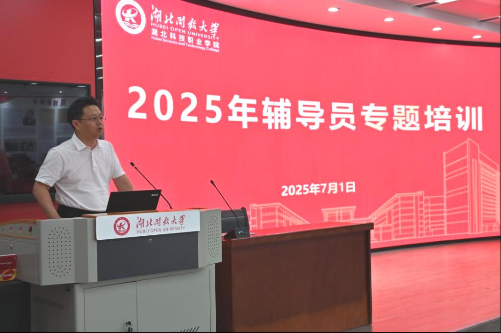 本网讯(通讯员 杨星星/文 高苗苗/图)为深入实施“时代新人铸魂工程”,进一步推动学校辅导员队伍专业化、职业化、专家化发展,打造适应新时代要求的高素质辅导员队伍。7月1日学工部聚焦辅导员工作室建设主题,通过专家辅导、分享交流等形式,开展了2025年辅导员工作能力提升专题培训。党委书记钟毓宁、校长陈志祥、副校长周得力出席本次培训,各学院党总支书记,学工部、团委全体人员及全体专兼职辅导员参加培训。
