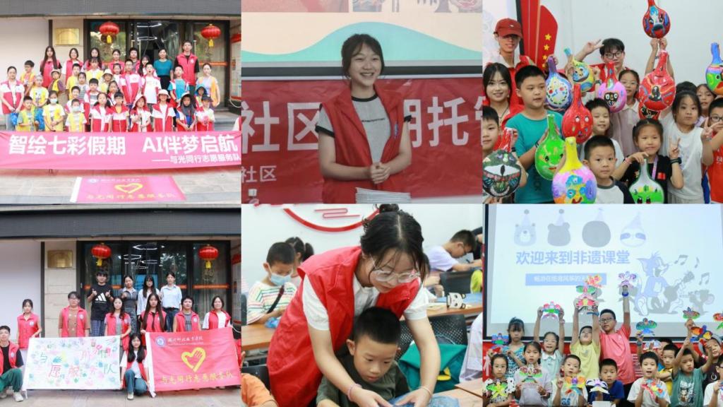 人工智能学院:校社联动润童心,共绘成长同心圆。6月30日至7月13日,“与光同行”志愿服务队走进武汉市格林东郡社区,开展了为期14天的暑期托管服务,为30余名社区儿童打造了丰富多彩的成长课堂。期间,开设了非遗手工、科技启蒙、彩绘童心、绿色环保、红色浸润等课程,精准对接儿童成长需求。非遗课堂通过马勺面具绘制、扎染工艺等,让孩子们感受传统文化的魅力;音乐、环保与科学实验课则通过互动实践,培养动手能力,激发创造力和探索精神;结合专业特色的少儿编程课,不仅培养了儿童的计算思维和逻辑思维,更让志愿者们将在校所学知识运用到实践过程,真正做到学以致用,实现“高校所能”与“社区所需”的有机融合。结课仪式上,社区党委向志愿者赠送锦旗,充分肯定活动成效。学院还与社区签订了“校社共建”协议,推动志愿服务常态化发展,让校社联动成为滋养青少年成长的持久力量。