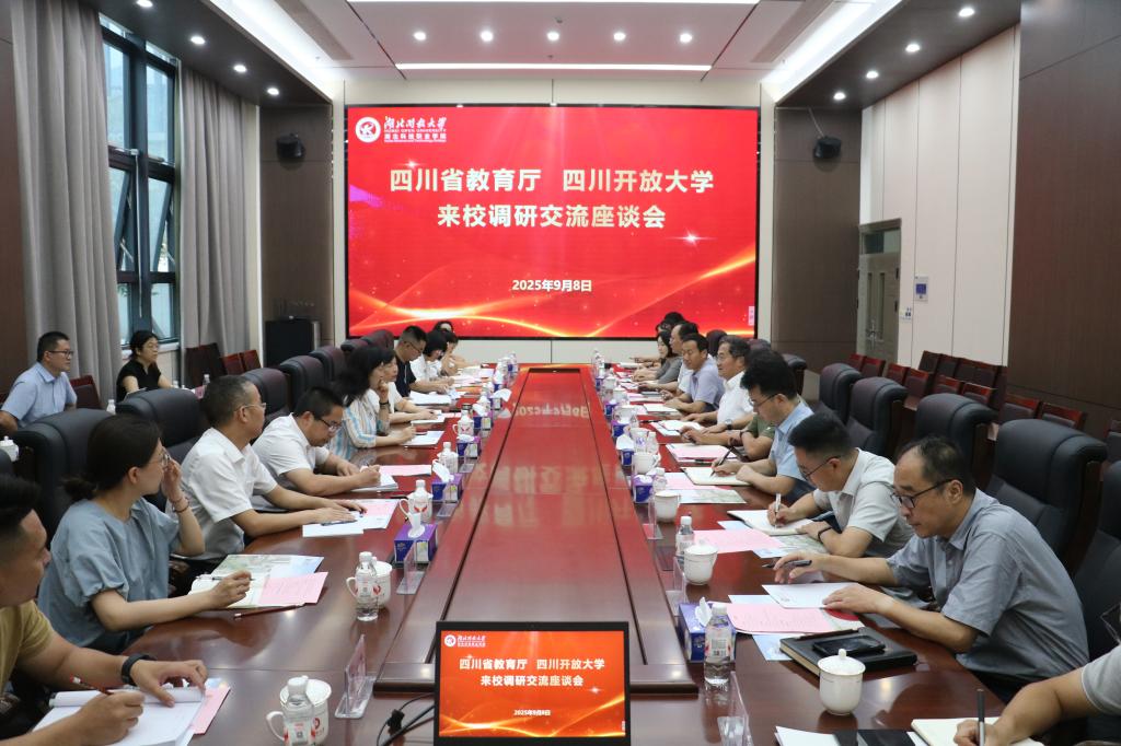 本网讯(通讯员 王欣/文 李贺刚/图)9月8日,四川省教育厅副厅长石静、四川开放大学党委书记王玲一行莅临1xbet平台开展办学体制专题调研,省教育厅职业教育与成人教育处二级调研员高月功陪同调研,学校党委书记钟毓宁、副校长周得力参加调研。