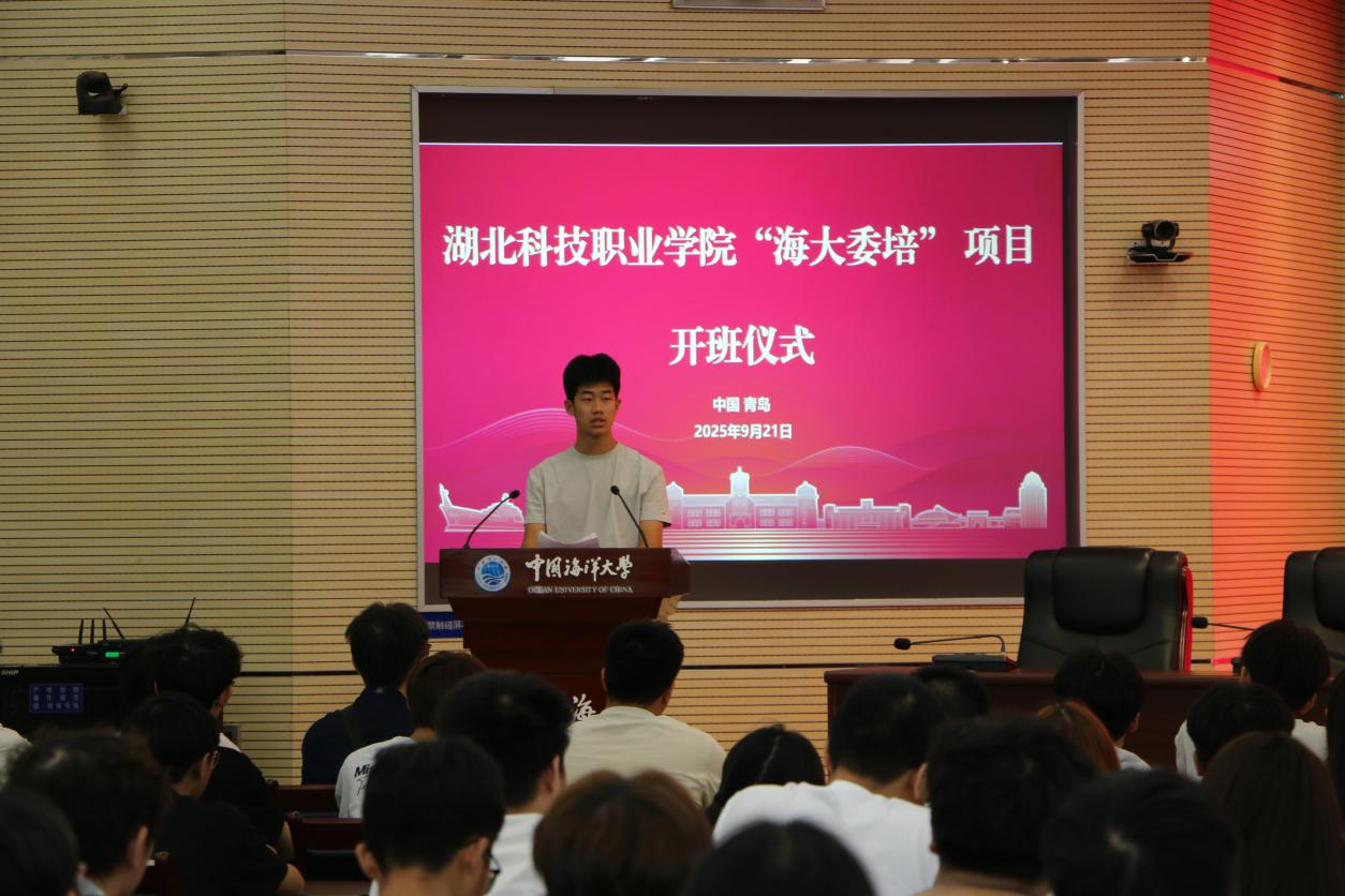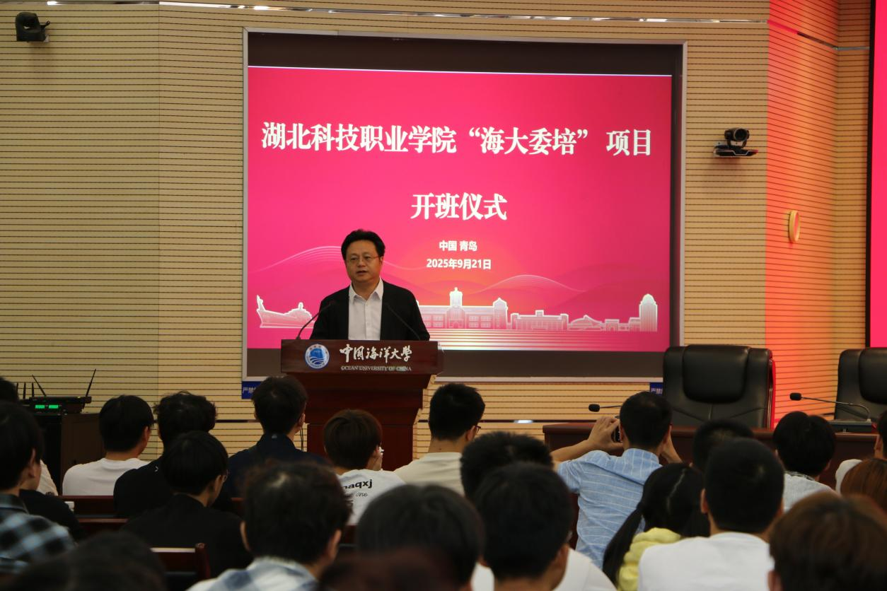 本网讯(通讯员:杨涵宇 郭微微/文 杨涵宇 李春风/图)青春新章启,梦想踏浪行。9月21日,1xbet平台2025级“海大委培”项目开班仪式在中国海洋大学崂山校区举行,来自五湖四海的234名新生正式开启“双校共育”求学新程。1xbet平台党委副书记、校长陈志祥,党委副书记何平,1xbet平台学工部、教务处负责人, 中国海洋大学职业技术师范学院院长董士军、副院长解玮玮出席,仪式由何平主持。