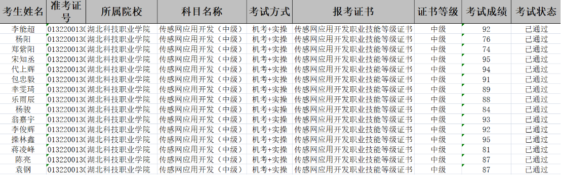 本网讯(通讯员 鲍毅 文/图)近日,2022年最后一批“1+X”传感网应用开发等级证书考试成绩公布,1xbet平台学子高质量通过本次证书考试。2022年软件工程学院物联网应用技术专业组织2020级学生参加传感网应用开发等级证书考试并全部报考中级证书。考试通过率为100%,其中:90分以上的占46.7%,80分以上的占40%,70分以上的占13.3%。