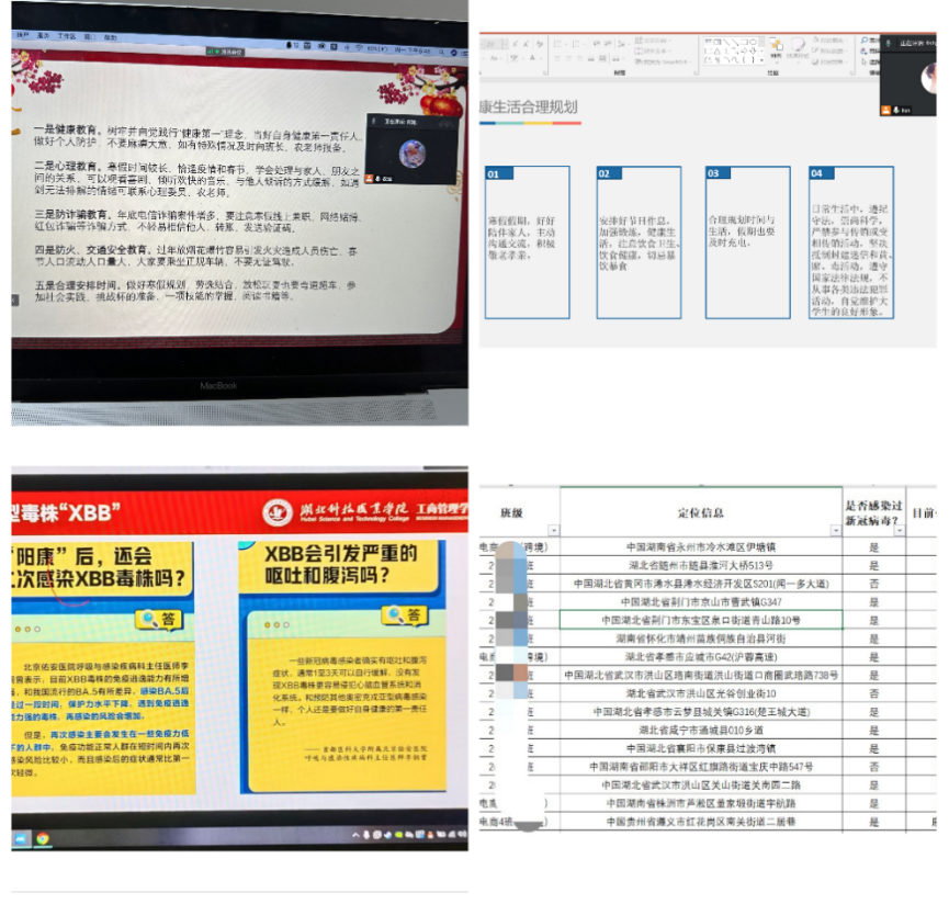 学院辅导员以图片、视频、故事分享等形式,准备了内容丰富、形式多样的寒假安全专题教育“云”班会。辅导员们充分发挥身边真实案例的教育功能,做好疫情防控教育,引导学生做好新冠病毒“乙类乙管”后的个人防护工作;注意食品、交通、网络社交、财产、防火灾以及顶岗实习安全,防范电信诈骗;在传统文化教育方面,教育学生要尊重春节礼仪和传统文化,增强文化自信和民族自豪感;在心理健康教育方面,做好假期学生心理健康教育和心理疏导,鼓励学生参与家庭劳动,多陪伴、多沟通。