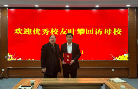 招生就业处主要负责人代表学校对叶攀校友回校助力学校就业创业工作表示欢迎和感谢,希望他能经常回母校分享创业成果,带动更多的学弟学妹就业创业,并向他颁发了创业导师证书。